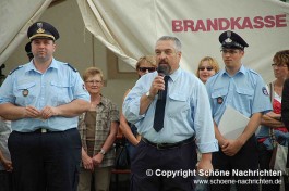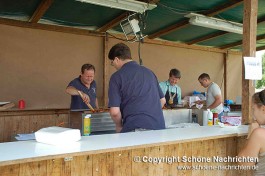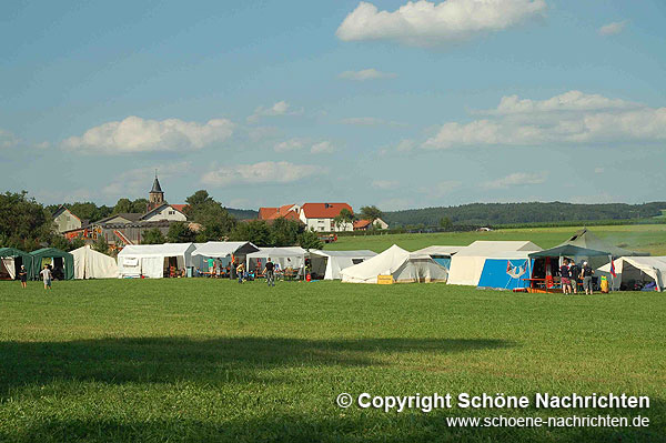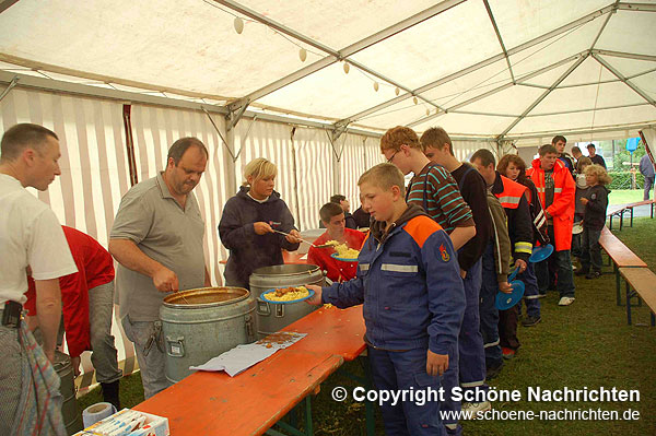 Die Versorgung der Gruppen wurde durch einen Metzger und Bäcker sichergestellt, der jeden Morgen und Abend das Zeltlager belieferte. Das Mittagessen kochte der Versorgungszug des Malteser Hilfsdienstes aus Petersberg – Steinhaus. Für die Gesundheit stand der DRK Ortsverband Tann zur Verfügung. Eine weitere Unterstützung garantierte die Gemeinde Hofbieber, die alles unternahm, dass die Jugendfeuerwehren ein durchaus schönes Zeltlager erlebten. (Steffen Hohmann)