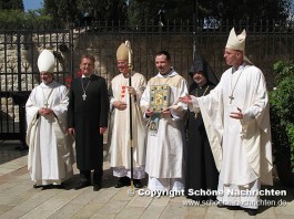 Ansonsten war die Basilika der Dormito mit Mitfeiernden aus allen Kirchen und Ordengemeinschaften des Heiligen Landes gefüllt: Sieben kirchliche Konfessionen und doppelt so viele Ordensgemeinschaften waren durch ihre Vertreter präsent.