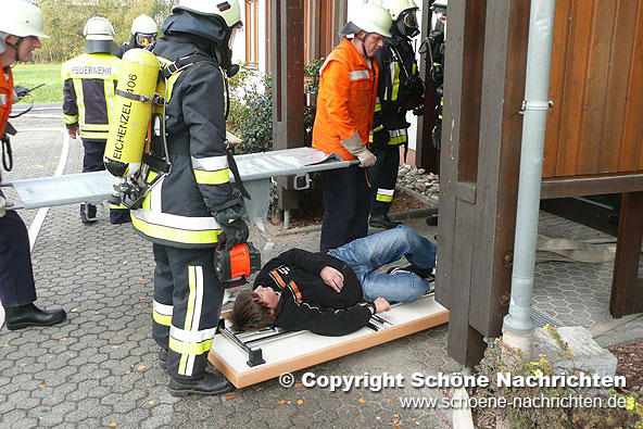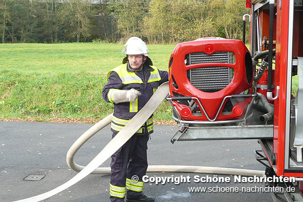 Eichenzell-Lütter. Am vergangenen Samstag demonstrierten die Feuerwehren von Lütter, Rönshausen, Rothemann und Welkers bei einer Herbstabschlussübung ihr können. Das Übungsszenario: Bei Feierlichkeiten im Bürgerhaus gerieten Vorhänge durch Kerzen am Buffet in Brand. Das Feuer breitete sich schnell auf den Dachstuhl aus. Bis auf zwei Kinder gelang es allen Gästen sich ins Freie retten. Die Kinder hatten im Stuhllager gespielt und den Brand zu spät bemerkt. Durch die Rauchentwicklung wurden ihnen der Weg in Freie versperrt.
