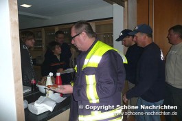 Nachdem der Atemschutztrupp die Kinder im Inneren des Bürgerhauses gefunden und ins Freie gebracht hatte, übernahmen Einsatzkräfte aus Rothemann deren Betreuung und Versorgung. Im Anschluss an die Rettungsmaßnahmen ging der Atemschutztrupp zum Innenangriff über. Während der Übung wurde im Auftrag der Gemeinde überprüft, ob bei der Wasserförderung aus der “Lütter“ mit einer Pumpe genügend Löschwasser zur Verfügung steht. Wäre dies nicht der Fall, müsste in unmittelbarer Nähe zum Bürgerhaus eine Zisterne errichtet werden. Zur abschließenden Übungsbesprechung mit kleinem Imbiss trafen sich die 60 Brandschützer im “gelöschten“ Bürgerhaus.