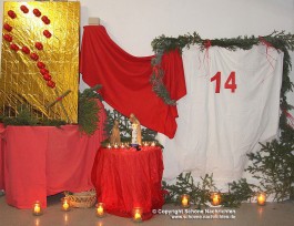 Eiterfeld. In der Pfarrei St. Georg, Eiterfeld findet in diesem Jahr erstmalig ein lebendiger Adventskalender statt. Maria und Josef sind auf Herbergsuche und finden jeden Abend um 18.00 Uhr eine Bleibe in verschiedenen Ortsteilen und Familien der Gemeinde. Am Montag veranstaltete die Pfarrkuratie Wölf unter dem Thema „Perlen“ das 14. offene Kalendertürchen. Nahezu 100 Erwachsene und Kinder folgten den Texten und sangen kräftig mit. Bei Plätzchen, Tee und guten Gesprächen klang der Abend aus. Zur Erinnerung bekam jeder eine Perle. Auch am Dienstag wurde wieder eine Tür geöffnet, und zwar in Eiterfeld in der Fürstenecker Straße 8.