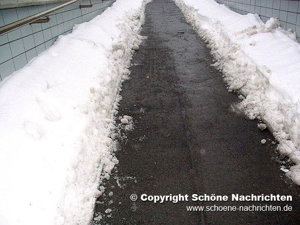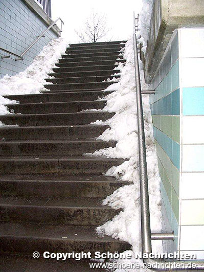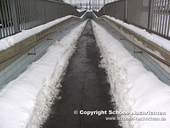 Weiter schreibt Möller, dass die nach neuesten Vorschriften insbesondere für mobiltätseingeschränke Personen gebauten und daher über 90 Meter langen Rampen zu den Bahjnsteigen so schlecht geräumt sind, dass weder ein Festhalten an den beidseitigen Geländern, noch ein gefahrloses Gehen auf dem schmalen schneefreien Mittelsttreifen möglich ist. Mangels eines durchgehenden Streuens von Salz bzw. sonstigem Abstumpfungsmaterial seien zahlreiche eisglatte Stellen vorhanden, die eine erhebliche Gefahren für die hunderte von Schülern, Berufspendlern und Bahnreisende im Allgemeinen seien.
