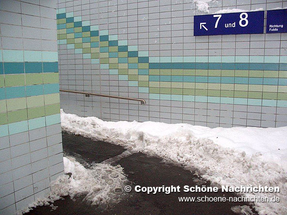 100204_Winter_007Flieden. “Aufmerksam gemacht durch die Anrufe zahlreicher Pendler habe ich heute (04.02.10 gg. 08.45 Uhr die Verkehrsstation Flieden besichtigt und katastophale Zustände auf der Treppe und den Rampen zu den Bahnsteigen dokumentiert”, so der SPD-Fraktionsvorsitzender Winfrid Möller einleitend in einer Pressenotiz wörtlich.