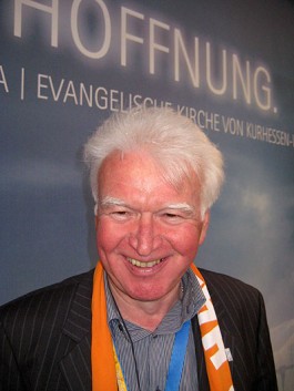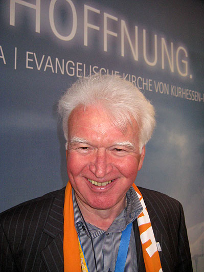 Die Atmosphäre des Kirchentages empfindet Richard Pfeifer, Biebergemünd-Kassel, hoffnungsvoll. „Die Kirchen bewegen sich aufeinander zu und die Menschen fordern dies auch. Hier am Kirchentage habe ich erlebt, dass sich auch evangelische und katholische Bischöfe so äußern“, meint Richard Pfeifer. „Die Offenheit unseres Kirchenstandes beeindruckt mich als Besucher. Der runde Tisch nimmt das vorweg, was wir von unseren Kirchen erwarten“, sagt der Katholikenratsvorsitzende.