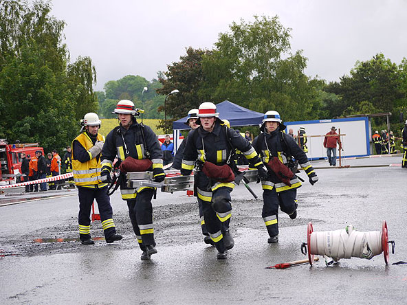 Fulda. Bei der Feuerwehrleistungsübung auf Landkreisebene, die auch dieses Jahr wieder am Feuerwehrstützpunkt Fulda Nord durchgeführt wurde, absolvierten die teilnehmenden Mannschaften einen theoretischen und praktischen Teil. Im theoretischen Teil war ein Katalog von 15 Fragen quer durch alle Ausbildungsgebiete im Feuerwehrwesen zu beantworten. Bei der praktischen Übung, die auf einer dafür speziell vorbereiteten Übungsbahn durchgeführt wird, mussten die Mannschaften Ihre praktischen Fähigkeiten unter Beweis stellen.