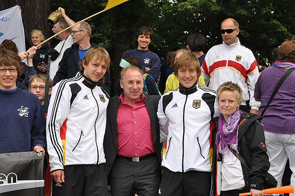Der Vorsitzende des Kanu-Club, Harald Piaskowski, beglückwünschte die beiden Athleten und beschrieb sie als Leistungsträger, die nun endlich in den Fußstapfen des weltweit bekannten „Fulda-Kanu-Express“ (Andreas Dajek und Ulrich Knittel) getreten sind. Den anwesenden Sportlerinnen und Sportlern, den Eltern und den Fans empfahl er die beiden als Vorbilder und als Motivator für künftige Leistungsträger, auf die der Kanu-Club-Fulda besonders stolz sein könne. Piaskowski flachste, dass er persönlich an diesem Tag so stolz auf sein Team sei, dass er nach dem morgendlichen Training kaum durch die Bootshaustür gekommen ist.