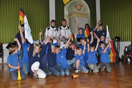 Da Weltmeister in Fulda doch eher selten sind, lag es nahe, den beiden einen großen Empfang zu bereiten. Oberbürgermeister Gerhard Möller hatte dazu am vergangenen Samstag ins Stadtschloss eingeladen. Nachdem die beiden Sportler zuhause abgeholt worden waren, ging es in einem Autokorso durch die Innenstadt und dann zu Fuß über den Domplatz ins Stadtschloss. Viele Passanten hatten bereits vom Titelgewinn der Kanuten gehört, andere glaubten eher an einen Aprilscherz anlässlich der Fußball-WM. Nicola Tedesco kam aus seiner Pizzeria „Tomate“ in der Heinrichstraße ganz aufgeregt auf die Straße gestürzt und wollte wissen, was es denn so lautstark zu feiern gäbe. An ihm waren die Veröffentlichungen zum Titelgewinn der Fuldaer Kanuten bislang spurlos vorbei gegangen, aber er gratulierte ganz spontan zu diesem grandiosen Erfolg. Über 80 Anhänger hatten sich dem Autokorso auf dem Weg durch die Innenstadt angeschlossen und waren mit zum Empfang ins Stadtschloss gezogen.