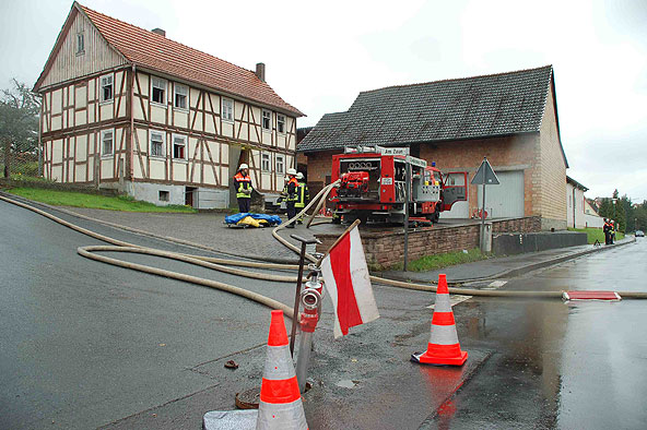 Teilnehmende Feuerwehren: Leibolz, Eiterfeld, Leimbach, Großentaft – 39 beteiligte Einsatzkräfte - Wohnhausbrand mit Menschen in Gefahr in Setzelbach