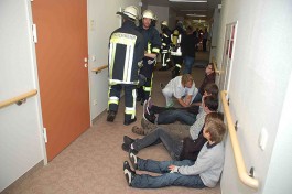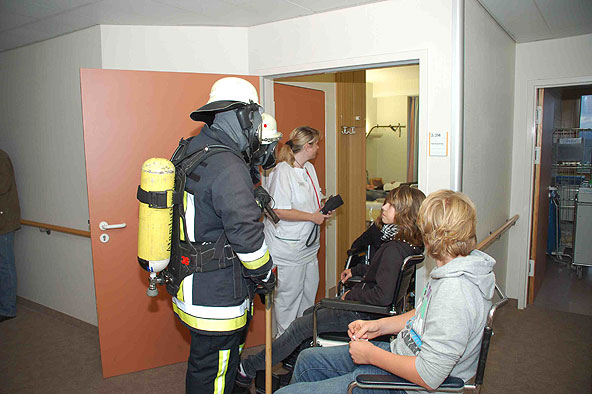 Teilnehmende Feuerwehr: Burghaun, Brandschutzaufsicht des Landkreises Fulda – 13 beteiligte Einsatzkräfte - Brand in HELIOS-Klinik in Hünfeld mit Menschen in Gefahr