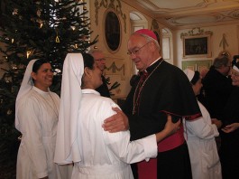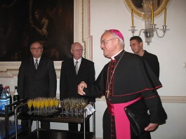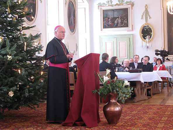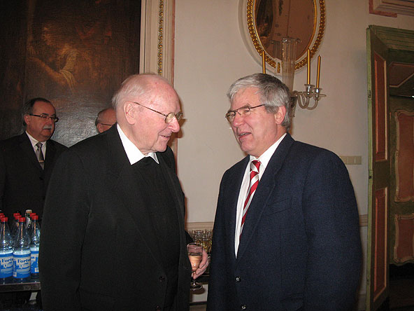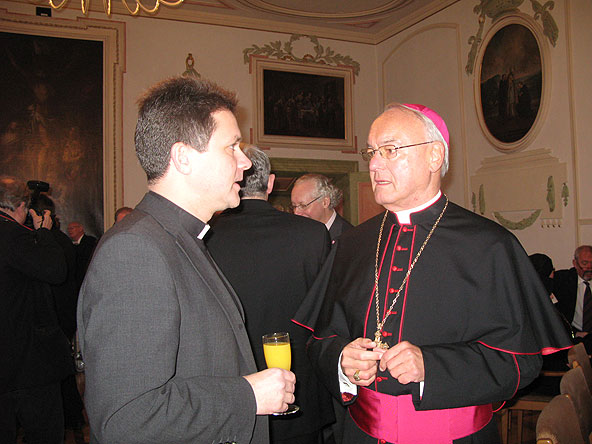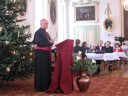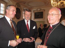Landrat Bernd Woide übermittelte, auch im Namen von Oberbürgermeister Gerhard Möller, für Landkreis und Stadt Fulda Neujahrswünsche an die Kirche und hob in seiner Ansprache hervor, dass bei allem wirtschaftlichem Optimismus viele „soziale Ängste“ der Menschen zu spüren seien, da viele ihrer Zukunft mit Unsicherheit entgegensähen. Durch Gesetzestätigkeit könne man diese Ängste wohl nicht nehmen, doch müsse der Staat darauf aus sein, bei seinen Bürgern Vertrauen zurückzugewinnen und, wie es auch die christliche Soziallehre vorgebe, dem Einzelnen nach den Prinzipien Personalität und Subsidiarität gerecht zu werden. In der Region Fulda sei man hier auf einem guten Weg, so der Landrat, der sich bei der katholischen Kirche für die gute Kooperation gerade sozialen Bereich bedankte.