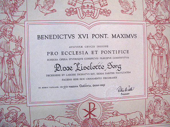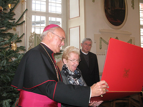 Am Ende des Neujahrsempfangs gab Bischof Algermissen zwei päpstliche Ehrungen bekannt. Für ihr herausragendes ehrenamtliches Engagement wurde Liselotte Sorg aus Stadtallendorf-Niederklein mit dem Orden „Pro Ecclesia et Pontifice“ ausgezeichnet. Ordinariatsrat Elmar Gurk, Vorsitzender des Aufsichtsrates des Diözesancaritasverbandes, wurde von Papst Benedikt XVI. zum „Päpstlichen Ehrenkaplan“ (Monsignore) ernannt.
