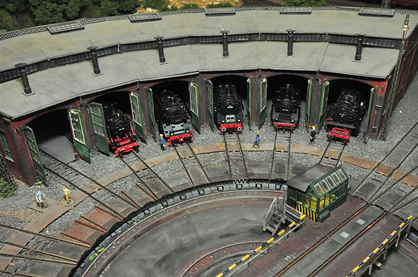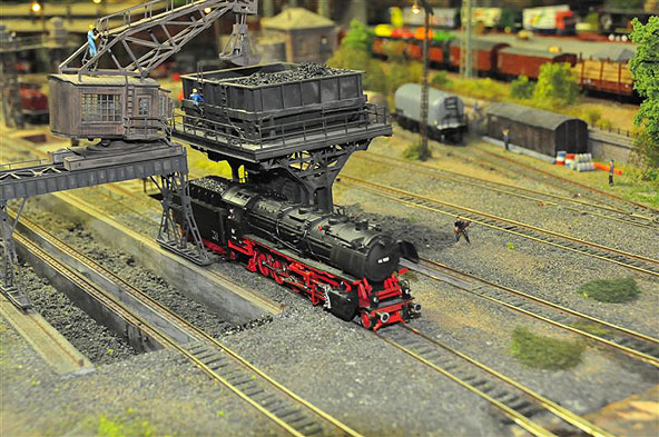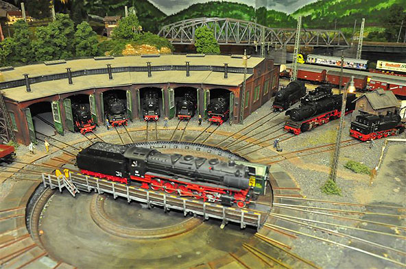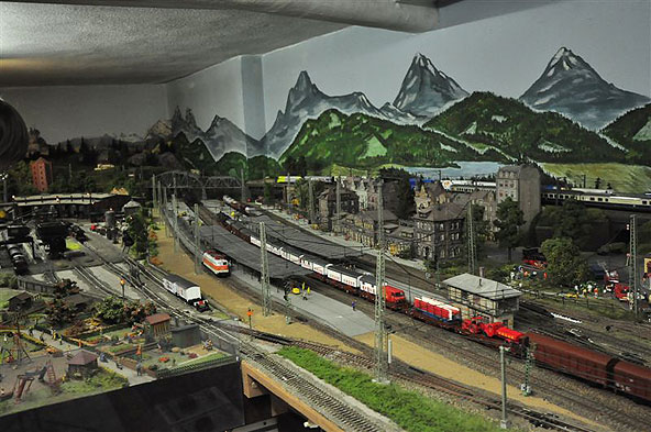 Vorgeführt werden Lokomotiven und Wagen aus fast allen Bahnepochen. Das beginnt mit der Zeit der Deutschen Reichsbahn Gesellschaft (DRG) Anfang der zwanziger Jahre, geht über die Anfänge der Deutschen Bundesbahn nach 1945 und endet beim neuesten ICE der DB AG. Eine Straßenbahn verbindet im Pendelverkehr den großen Durchgangsbahnhof in der Unterstadt mit der Oberstadt auf der Anhöhe. Über eine Nebenbahnstrecke verbinden typische Züge den großen Bahnhof mit dem Bergdorf auf dem entgegen gesetzten Anlagenteil. Auf der MEC-Anlage herrscht nicht nur reger Fahrbetrieb; zahlreiche Details in Ortschaften und Landschaft vermitteln viel bahntypische Atmosphäre – eine gute Anregung für die Modellbahn daheim.Nichts ist so gut, als dass man es nicht noch verbessern könnte. So wurde an verschiedenen Stellen die Anlage durch die Clubmitglieder neu gestaltet. Davon können sich die Besucher am Sonntag überzeugen.