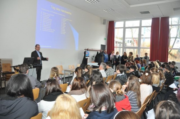 Das Handwerk sei eine wesentliche Stütze der Wirtschaft und biete eine Fülle von hochwertigen Ausbildungsmöglichkeiten und Abschlüssen, betonte Harald Borngräber von der Handwerkerschaft in seiner Eröffnungsansprache. Borngräber ermutigte die Jugendlichen, dem Handwerk aufgeschlossen gegenüber zu stehen und sich über die vielfältigen Möglichkeiten zu informieren. Ralf Kleemann, der zweite Konrektor der Adenauerschule, der die Veranstaltung seitens der Schule organisiert hatte, forderte seine Schüler auf, die guten Ausbildungsmöglichkeiten des Handwerks zu prüfen, anstatt um jeden Preis eine weiterführende Schule nach der Klasse zehn anzustreben.