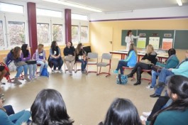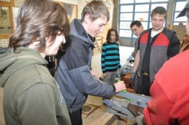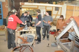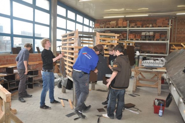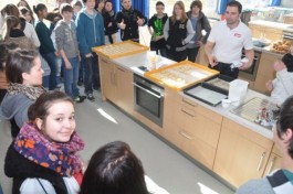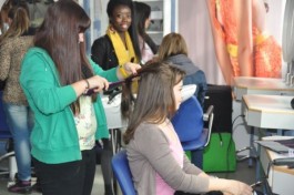 Aufgeteilt nach Neigungsgruppen besuchten die Schüler dann die unterschiedlichen Workshops der einzelnen Innungen und konnten sich dabei zum großen Teil auch praktisch betätigen. So wurde in der Lehrbauhalle gehämmert, gesägt, gespachtelt und gemalt, im Frisurenstudio legten nicht nur die Mädchen Hand an ihre Frisuren an und in der schuleigenen Lehrküche wurden eifrig Brötchen und Brezeln gebacken..
