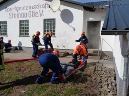 Am Nachmittag kam es zu einer erneuten Alarmierung von zwei Gruppen. Stichwort hier war: „Waldbrand in Steinau“. Zu dem Kampf mit dem (angenommenen) Feuer mussten auch vier verletzte Personen aus dem Geäst befreit und gerettet werden.