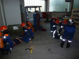 Der aufwendigste und wohl auch interessanteste Einsatz des Tages fand dann am frühen Abend auf dem Gelände der Firma EDAG statt. Hier wurden alle fünf Gruppen unter dem Stichwort „Brandmeldeanlage EDAG“ zur Einsatzstelle gerufen. Gemeldete Lage war ein Maschinenbrand mit entsprechend starker Rauchentwicklung. Vor Ort stellte sich heraus, dass sich noch mehrere Personen im Gebäude befanden und neben der brennenden Maschine eine Gasflasche stand. Wegen der starken Rauchentwicklung waren die Trupps gezwungen unter Atemschutz ins Gebäude zu gehen. Hierbei kamen kinderfreundlich umgebaute Atemschutzgeräte zum Einsatz.