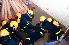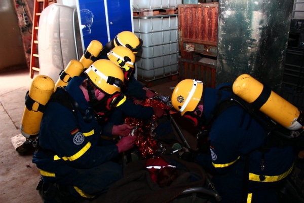 Dabei wurde besonders auf das Erkunden von Gebäuden bei Nullsicht durch Rauch wertgelegt. Des Weiteren wurden verschiedene Notfallszenarien in der Theorie durchgesprochen und später auch in der Praxis umgesetzt. Dazu diente zum Beispiel das Retten eines mit Atemschutz ausgerüsteten Bergeräumgerätefahrers, was sich auf Grund der engen Platzverhältnisse in der Kabine als keine leichte Aufgabe erwies.