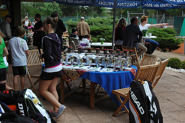 Belohnt wurden die Turnierteilnehmer durch Anwesenheit überaus zahlreicher Zuschauer, die bei bestem Wetter ebenso über das profi-ähnliche Tennis in den U18/21-Wettbewerben wie auch über den erstaunlichen Leistungsstand der jüngeren Protagonisten staunen durften – am ersten Turniertag sogar bis 23.30 Uhr, als die letzten Duelle des Spieltags nach Einbruch der Dunkelheit in der GW-Halle ausgetragen wurden. Highlight und Zuschauermagnet war wohl am Finaltag das Fuldaer Duell im Finale des Wettbewerbs U14 M.