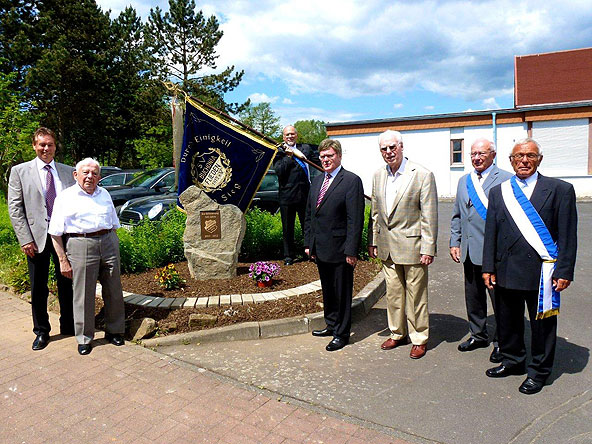 Der Sonntagmorgen – Pfingstsonntag – begann mit einem Festgottesdienst in der Pfarrkirche St. Goar. Im Anschluss daran machte sich der Bannerzug, angeführt vom SFZ Freiwillige Feuerwehr Flieden, vom Kirchplatz auf in Richtung Sportplatz und Clubhaus des SV Flieden. Dort, im Außenbereich des Clubhauses, wurde ein Gedenkstein eingeweiht und von den beiden Fliedener Pfarrern Maleja und Biehn ökumenisch gesegnet. Eine schöne Geste, denn so bleiben die „Jahrhundert-Tage“ auch für die Nachwelt sichtbar in Erinnerung. Über den Tag verteilten sich die festlichen Aktivitäten rund um Mittagstisch, Unterhaltung durch den Musikverein Döngesmühle und Programm für die jüngsten Besucher.