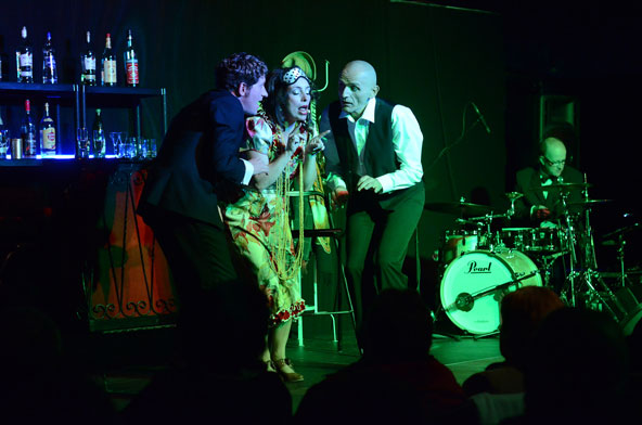 Eingespielt sind die beiden preisgekrönten Herren (Rottweiler Satirelöwe) und die Fuldaer Comedy Diva aber nicht nur musikalisch. In spritzigen Dialogen und witzigen Szenen, die auch dadaistische Einlagen nicht scheuten, spielten sie immer wieder in neuen überraschenden Variationen den Gegensatz „Frühaufsteher gegen Spätzubettgeher“ gegeneinander aus. Tatsächlich machten die drei Künstler durch ihre Spätvorstellung tatsächlich alle Zuschauer im vollbesetzten Zelt zu Nachteulen – zu glücklichen.