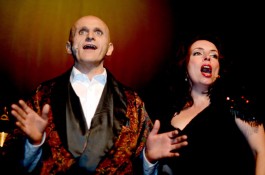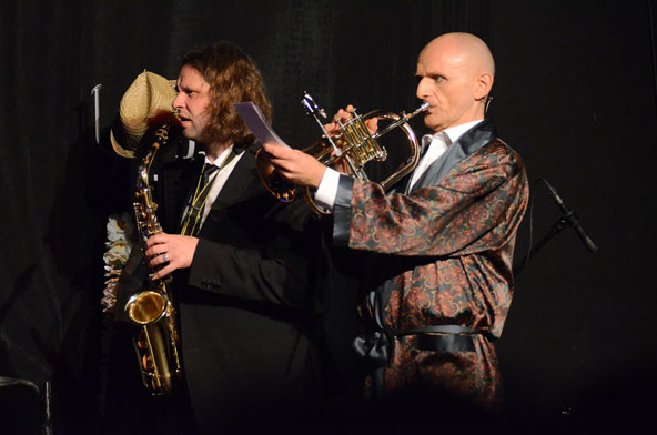 Ein Mittwochabend im Juni, Es ist nach 22 Uhr, es regnet und die Temperaturen haben nichts mit Frühsommer zu tun, eher mit Spätherbst – die Umstände waren alles andere als einladend, doch wer in dieser Nacht dennoch das heimische Sofa gegen einen Stuhl im Kuki-Zirkuszelt in Schlüchtern tauschte, wurde reichlich belohnt. Das Duo Wolf & Bleuel bildet gemeinsam mit Marianne Blum ein Dreigestirn, das im Unterhaltungs-Zirkus jeden Vergleich aushält und eigentlich längst in Fernsehen gehört! Denn die drei Bühnenkünstler sind nicht nur jeder auf seine Art komisch, sondern sie sind auch gute Sänger. Highlights waren immer wieder die dreistimmigen Lieder. Da zeigte sich, wie gut ihre Stimmen harmonieren – übrigens hervorragend begleitet von den Musikern Danny Müller (Keyboard) und Christoph Herber (Drums).