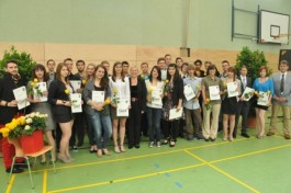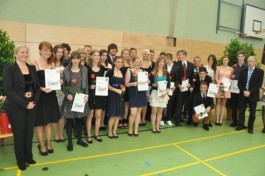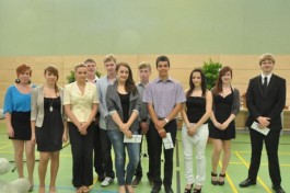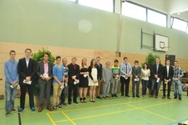 Buchgeschenke aus den Händen von Schulleiterin Schüler und den jeweiligen Klassenlehrern erhielten diejenigen Absolventen mit den jeweils besten Abschlusszeugnissen ihrer Klassen. Es waren dies: Lukas Dehler (10a), Sandra Huder (10b), Julia Seuring (10c), Emily Schmidt (10d) und Florian Heil (10e).