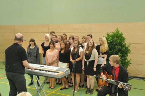 Zur Auflockerung trugen Beiträge der jeweiligen Abgangsklassen bei, die musikalische Umrahmung lag bei Schulband und Schulchor unter der Leitung von Volker Dotzert. Den Auftakt des Abschiedstages bildete ein ökumenischer Gottesdienst in der Lehnerzer Kirche, zelebriert von Pfarrer Marvin Lange und Monsignore Dr. Günter Etzel unter dem Motto „der Bahnhof als Station auf dem Weg des Lebens.“ Die Gestaltung und das Einstudieren der Schülerbeiträge lag in den Händen von Jürgen Hannig, Thomas Euler und Elisabeth Bornscheuer, für die Musik waren Volker Dotzert, Thomas Euler und Sarah Bleuel verantwortlich. Bereits zwei Tage zuvor hatten die Abgänger im Petersberger Propsteihaus einen zünftigen Abschlussball gefeiert, zudem die Mambo Kingx ordentlich eingeheizt hatten.