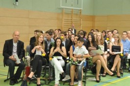 Auch Rainer Helfrich, Vorsitzender des Schulelternbeirats, ging auf die Träume der jungen Menschen ein, gab aber gleich zu bedenken: „Der Alltag holt unsere Kinder immer wieder auf den Boden der Realität zurück.“ Helfrich dankte allen, die an der erfolgreichen Schulzeit der Jugendlichen mitgewirkt haben, um anschließend diejenigen Schülerinnen und Schüler zu ehren, die sich durch besonderes Sozialverhalten in ihren Klassen ausgezeichnet hatten. Es waren dies: Martin Helfrich (Klasse 10a), Marvin Alt (Klasse 10b), Vadim Klein (Klasse 10c), Alexandra Sauer (Klasse 10d) und Florian Heil (Klasse 10e).