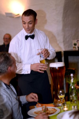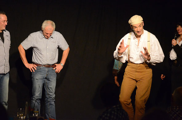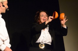 Fulda. Fliegende Bälle, Diabolos, die entgegen der Schwerkraft eine Schnur hinauf rollen, ein Playback-Tod der Gastgeberin – die Auftaktveranstaltung der Dinnershow-Reihe „Gernsehen und Abendessen“ hielt, was die Ankündigung versprochen hatte und bescherte den Zuschauern einen temporeichen und unterhaltsamen Abend bei bester Atmosphäre und leckerem Essen im Fuldaer Museumskeller. Dazu gehört auch, dass der Gast des Abends, der Fuldaer Jongleur Ullich Steybe, nur so mit Charme um sich warf.