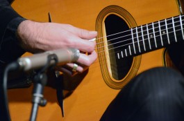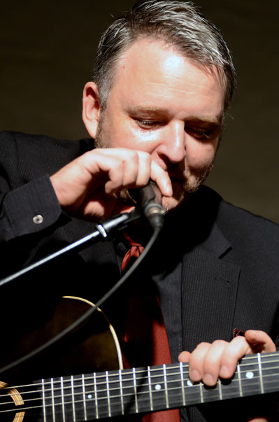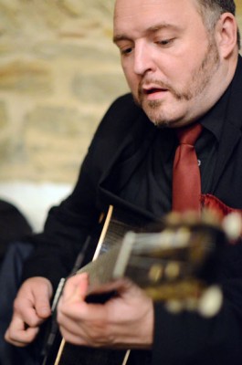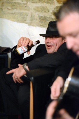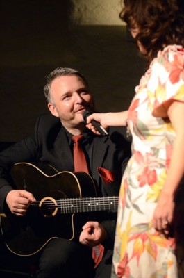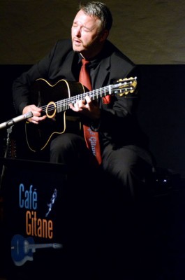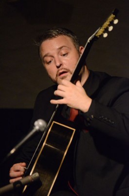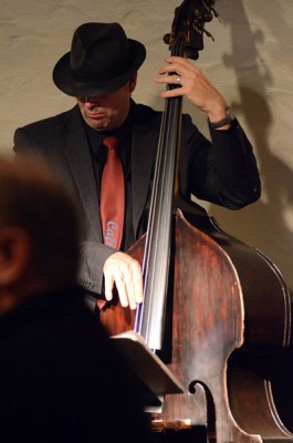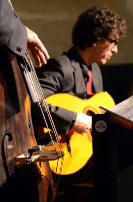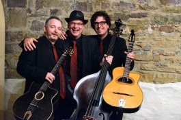 Die Leidenschaft für die Musette steht dem gebürtigen Kölner bei seinem Gitarrenspiel ins Gesicht geschrieben. Seine Mimik begleitet seine Töne, meist mit geschlossenen Augen spielt er wie bei den Zigeunern üblich die Stücke auswendig. Trotz starker Heiserkeit erzählt er unterhaltsam und anekdotisch von den Besonderheiten der Zeit des Genres. Während Petzolds Finger teilweise in atemberaubender Geschwindigkeit über das Griffbrett seiner Gitarre jagten, wirkte Emilian Meyer am Kontrabass nahezu tiefenentspannt. Seinen schwarzen Hut tief ins Gesicht gezogen, als einziger stehend, überragte er seine Mitmusiker um ein weites und wirkte wie ein Fels in der Brandung. Für Norman Lecher an der Rhythmusgitarre war es quasi ein Heimspiel. Den gebürtigen Fuldaer kennt man bereits von der Formation Mighty Vibez, „der besten Reggae Band Deutschlands“, wie er selbst augenzwinkernd erzählte. Das Trio präsentierte sich spielfreudig, leidenschaftlich und machte eine nicht allzu populäre Musik einem breitem Publikum zugänglich.