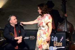 Fulda. Ja so war es angekündigt: „Ein Ausflug nach Paris“ und genau dorthin wurde am Mittwochabend das Publikum der Veranstaltungsreihe „Gernsehen und Abendessen“ entführt. Die Gastgeberin und Entertainerin Marianne Blum hatte nicht zuviel versprochen. Zu Gast war Café Gitane, eine Formation aus Rheinland, die temperamentvoll-feurigen französischen Musette-Walzer nach Manouche Art spielt, wie sie im Paris der goldenen 20iger und 30iger in zahlreichen Jazzlokalen der „Rives Gauche“ zuhören war und Berühmtheit erlangte. Dennoch sind leider viele Stücke und Melodien fast verloren gegangen. Doch das ist nur ein Grund, warum Café Gitane sich diesem Genre zugewandt hat. Lars Petzold, Gründer und Kopf der Gruppe ist den atemberaubenden Akkordfolgen und dem außergewöhnlich virtuos und abwechslungsreichem Repertoire verfallen.