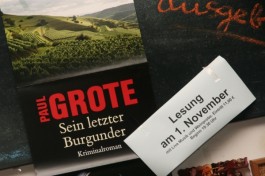 Im Anschluss an den dritten Teil der Leseprobe erzählt Paul Grote, wie er sich auf einen neuen Krimi vorbereitet. Er schreibt im Grunde nur über Weine und Regionen welche ihm gefallen. Er reist vor Ort, besichtigt Weingüter, trifft sich mit Winzern und recherchiert sehr genau. Im Anschluss wurde weiter Wein verkostet und der Musik von Andy Sommer gelauscht.