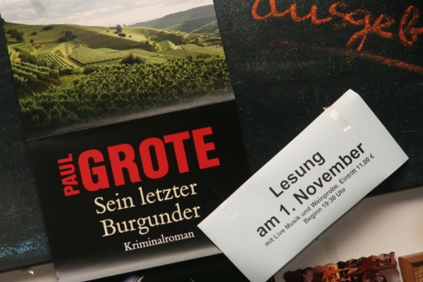Fulda. Das Weindepot Vinum aus Fulda hatte am Donnerstagabend zu einer Lesung mit Paul Grote incl. Weinprobe eingeladen. Mit rund 50 Krimifreunden mit einem Faible für Wein (oder auch umgekehrt) war das Vinum am Abend ausgebucht. Mit drei Leseproben stellte der Weinkrimiautor Paul Grote sein neustes Buch “Sein letzter Burgunder” in passender Kulisse vor.