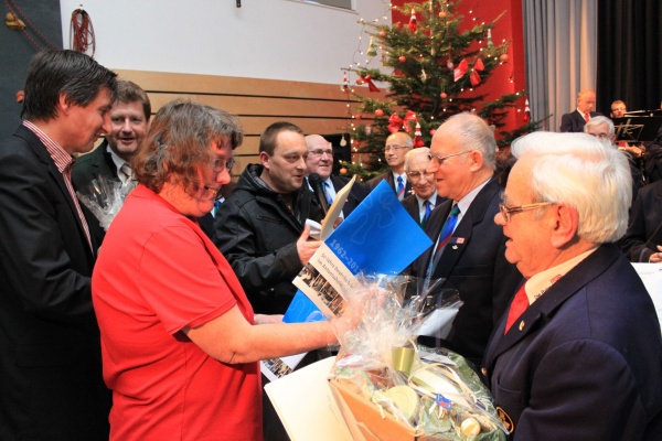 Das tolle Musikprogramm wurde durch Soloeinlagen der Sängerin Marita Hahn, viele Danksagungen und Ehrungen anlässlich des Jubiläums erweitert. Der Ortsstellenleiter des Bahn Sozialwerks, Stefan Möller, ehrte Werner Krüger, Robert Gippel und Paul Leitsch für ihr außergewöhnliches Engagement – sie haben an (fast) allen 50 Konzerten im Antoniusheim bisher teilgenommen. Außerdem gedachte Möller dem Ideengeber des Konzerts, Helmut Diel, der im Februar leider verstarb.