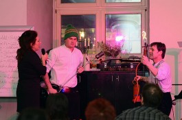 Fulda. Wie packt man Titel wie „Rhöner Äppel“ und die „Barkarole“ aus der Oper „Hoffmanns Erzählungen“ gemeinsam in ein Abendprogramm? Kein Problem für Marianne Blum und ihre Gäste die „Rhöner Säuwäntzt“ am letzten Mittwoch im ausverkauften Museumscafé. Rhöner Säuwäntzt meets Kabarett Diva oder auch Rhöner Geschwäätz trifft auf brillantes Hochdeutsch. Und damit es weder für Marianne Blum noch für das Publikum zu Kommunikationsschwierigkeiten kam, bot Blum dem amüsierten Publikum einen Sprachkurs an. In dem wurden Dialekt Ausdrücke wie z.B. Stosstrog (Sturkopf), dürrwänztig (schlank) oder Schnörbelskapp (Pudelmütze oder auch Kondom) von den „Säuwäntzt“ erklärt, dabei eindrücklich mimisch untermalt und ausgesprochen humorvoll dargestellt.