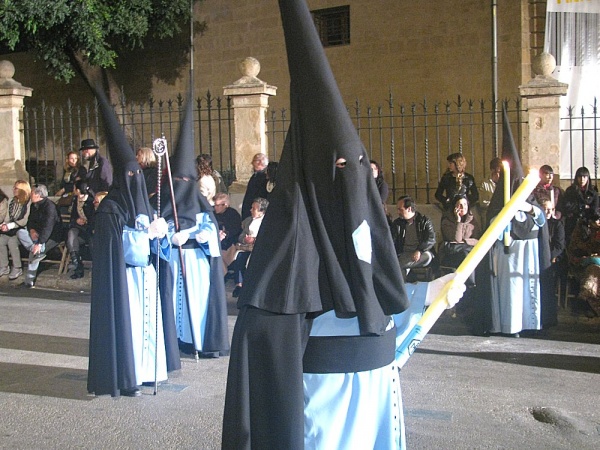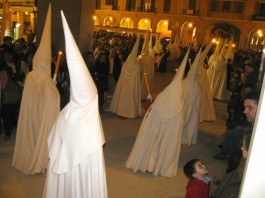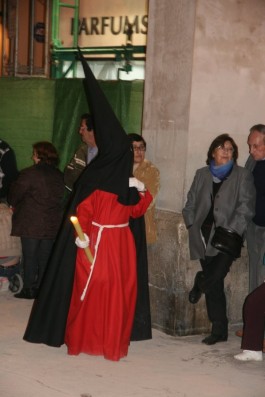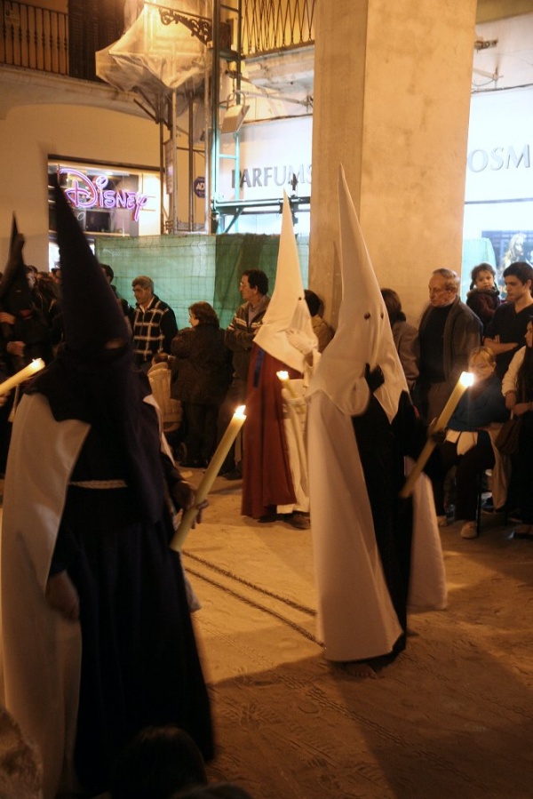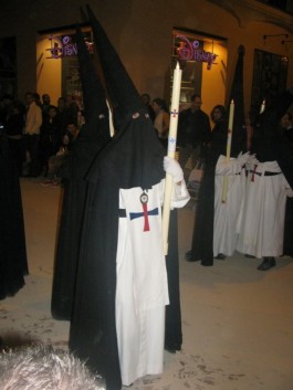 Neben den Prozessionen mit Gesang und Musik existieren Schweigeprozessionen oder Trommelprozessionen. Dumpfes Trommeln und das Rasseln der Ketten, sowie die schwermütige Musik unterstreichen die teilweise gruselige Szenenerie in den Gassen der Altstadt. Für Kinder sind die düsteren Osterprozessionen oft beängstigend. Sie erhalten in den Pausen Süßigkeiten bzw. Picos (kleine Brotstangen). Die Kapuze garantiert hierbei Anonymität – denn Buße ist reine Privatsache. Einige Büßer tragen ein Holzkreuz auf der Schulter. Wie die Nazarenos sind auch sie mit einer Haube bekleidet, diese hängt jedoch nach hinten.