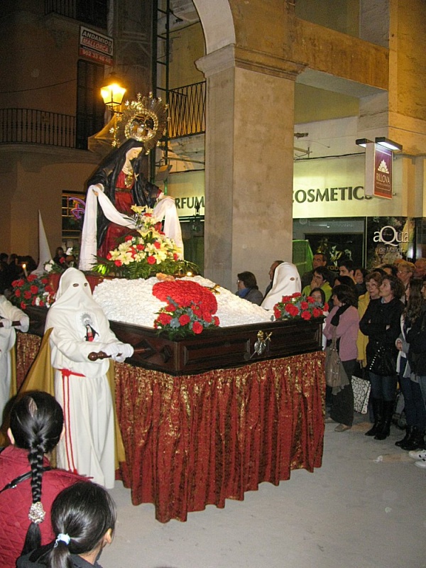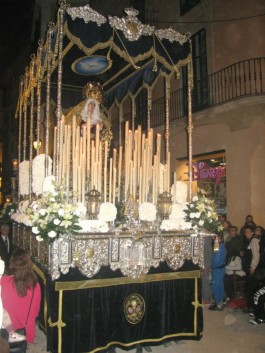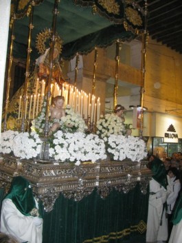 Ein wichtiger Bestandteil der Prozessionen sind die Pasos. Es handelt sich hierbei um Konstruktionen, welche eine Szene des Kreuzwegs Jesu zeigen oder auch eine Marienstatue. Privilegierte Büßer, die Costaleros, tragen diese teilweise tonnenschweren Altäre auf Schultern durch die Gassen. Die Träger befinden sich dabei unter den Konstruktionen und können somit die Umgebung nicht sehen. Begleiter rufen Kommandos für die Richtung und das Tempo. Die Kommandos für das synchrone Absetzen und Anheben der Bauten werden durch Klopfzeichen gegeben. Das Hauptelement einer jeden Prozession ‑ die Virgen (Jungfrau Maria) – ist das Hauptelement jeder Prozession. Die Figur ist mit kostbaren Gewändern, Kerzen und dem typischen Baldachin geschmückt.