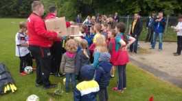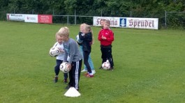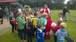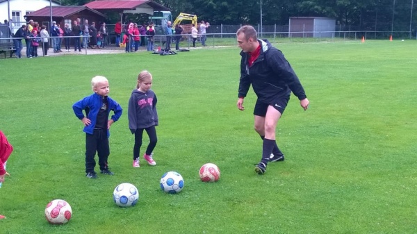 Und der SVD hatte sich ein abwechslungsreiches Programm einfallen lassen. Die Kinder wurden nach der Begrüßung in zwei Gruppen eingeteilt und schon ging es auf dem Sportplatz, begleitet von zahlreichen jungen Dietershaner Seniorenfußballern, los. An allen Stationen stand der Ball im Mittelpunkt. Fang- und Geschicklichkeitsspiele für die Kleinen wechselten sich zunächst ab mit mehreren Fußball-Parcours für die Älteren, bei denen man aber schon die Talente von übermorgen sichten konnte. Nach einem Fußballspiel rundete ein Torschuss-Wettbewerb die Aktionen auf dem Sportplatz ab. Anschließend wurden an die Kinder noch einige Geschenke verteilt, wobei dem neuen Trikot des SV Dietershan erwartungsgemäß das meiste Interesse seitens der Kinder entgegen gebracht wurde.