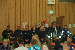 Am Nachmittag konnte Kreisjugendfeuerwehrwart Steffen Hohmann 130 Jugendliche (davon 104 männlich) zur bestanden Leistungsspange beglückwünschen und begrüßte im Rahmen einer kleinen Feierstunde zahlreiche Gäste. So lobte der erste Kreisbeigeordnete Dr. Heiko Wingenfeld die Jugendfeuerwehrmitglieder für ihre Leistungen im Team und richtete die herzlichsten Grüße von Landrat Bernd Woide aus. Er staunte nicht schlecht, da Fußballturniere wegen Regen abgesagt wurden, doch dieser Wettkampf der Jugendlichen nicht. Dies zeigt, dass das Thema Feuerwehr selbst bei den Jugendlichen nicht auf die leichte Schulter genommen wird und die Jugendlichen nicht aus Zucker sind. Auch Gersfelds Stadtrat Harald Schäfer konnte dem nur zustimmen und lobte die Organisation und Durchführung der Veranstaltung durch die Jugendfeuerwehr Gersfeld-Hettenhausen.