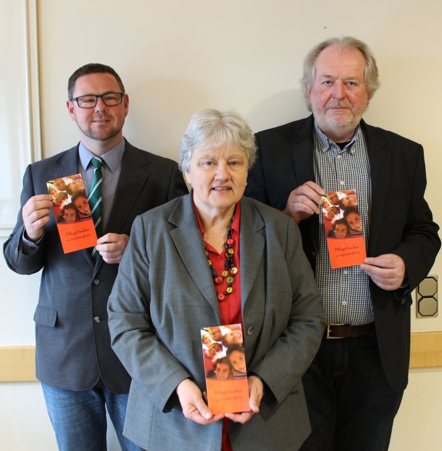 Druckfrische Informationen für Menschen, die Pflegeeltern werden möchten – Jugenddezernent Peter Zielinski, Gerhild Hoos-Jacob (Haus am...