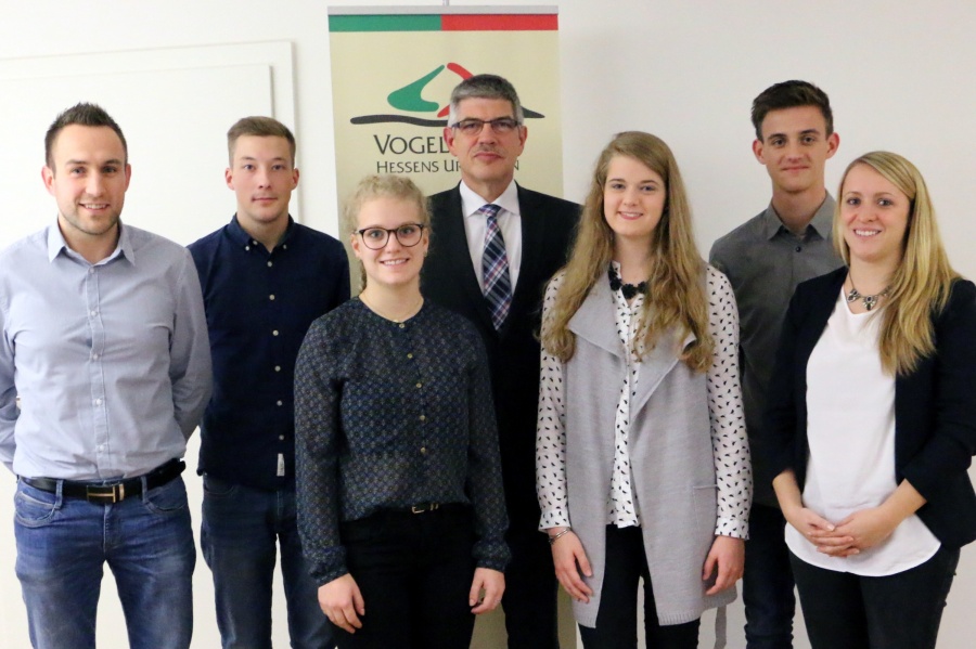 Fünf junge Leute wollen im nächsten Sommer ihre Ausbildung bei der Kreisverwaltung beginnen und waren zur Unterzeichnung ihres Ausbildungsvertrags in das Büro von Landrat Manfred Görig gekommen. „Sie haben das Auswahlverfahren erfolgreich bestanden und damit die erste Hürde genommen. Ich freue mich, dass Sie sich für die Ausbildung bei uns entschieden haben und dass Sie ausgewählt wurden. Jetzt liegt es in Ihrer Hand, was Sie daraus machen“, sagte Landrat Görig und ergänzte „Der Bedarf an guten Nachwuchskräften ist da, Sie haben beste Chancen für die Zukunft.“ Aus über 60 Bewerberinnen und Bewerbern wurden die neuen Auszubildenden ausgewählt und starten im August in ihre dreijährige Ausbildung: Grzegorz Wozniak (27 Jahre) aus Eiterfeld, Simon Möller (20 Jahre) aus Lauterbach, Lisa-Marie Schübeler (18 Jahre) aus Lauterbach, Christin Happ (18 Jahre) aus Antrifttal und Timo Walper (17 Jahre) aus Romrod.