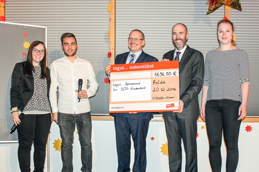 tegut… Mitarbeiter spenden 1696 Euro an SOS-Kinderdorf e.V. am 20. Dezember 2016