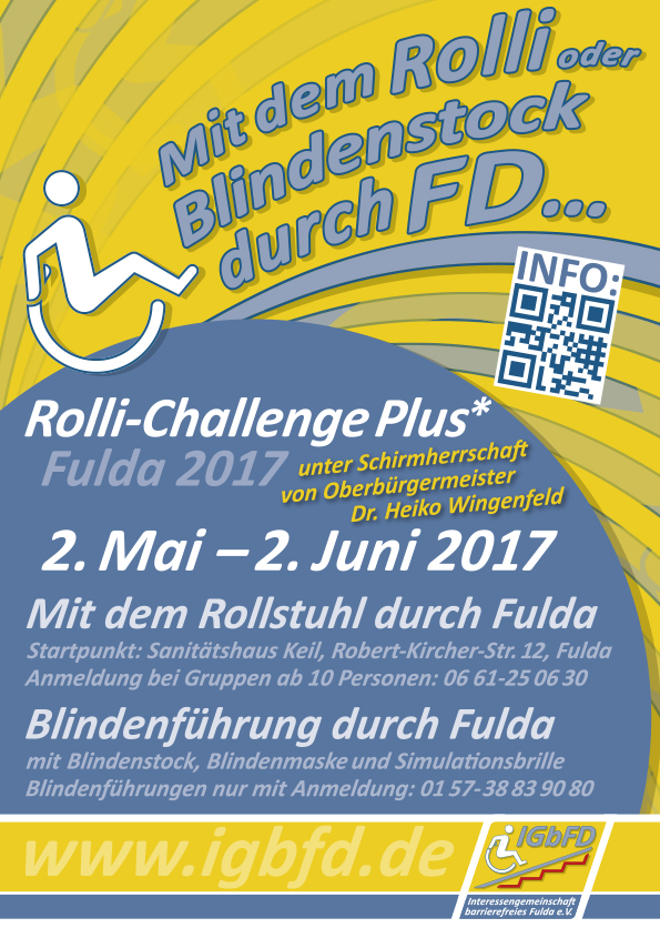 Nach dem großen Erfolg der Rolli-Challenge Fulda im Jahr 2015 mit über 700 Teilnehmern, plant die Interessengemeinschaft barrierefreies...