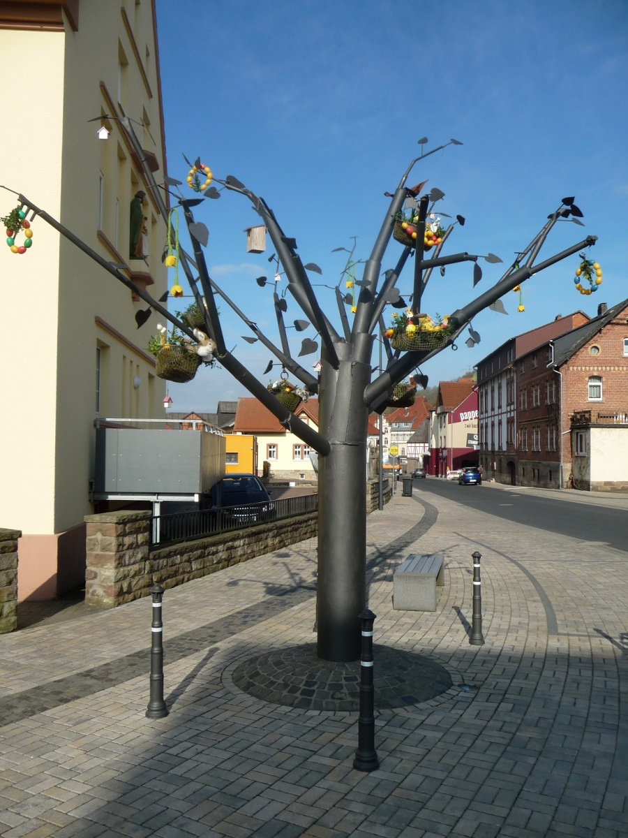 In der Rhön ist es eine alte Tradition, dass Brunnen und andere Objekte an öffentlichen Plätzen in der Osterzeit geschmückt werden. So...