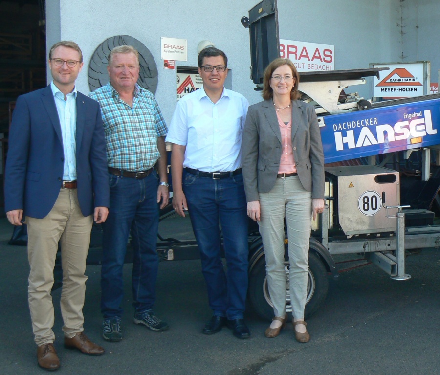 Erster Kreisbeigeordneter Dr. Jens Mischak informiert sich im Dachdeckerbetrieb Hansel / Auftragsbücher sind voll
