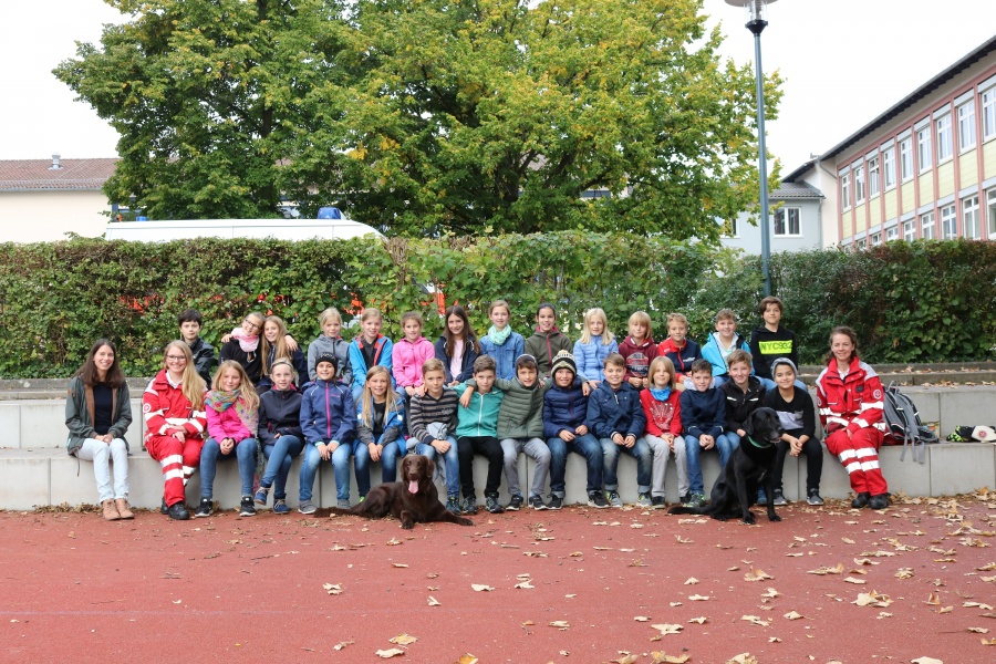 Johanniter-Rettungshundestaffel Hessen-Mitte zu Gast bei der Klasse 5f der Alexander-von-Humboldt-Schule