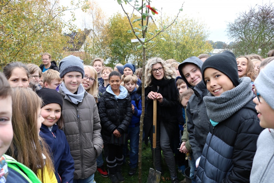 Religions- und Ethikkurse der Jahrgangsstufe 5 pflanzen einen Apfelbaum auf der Schulwiese