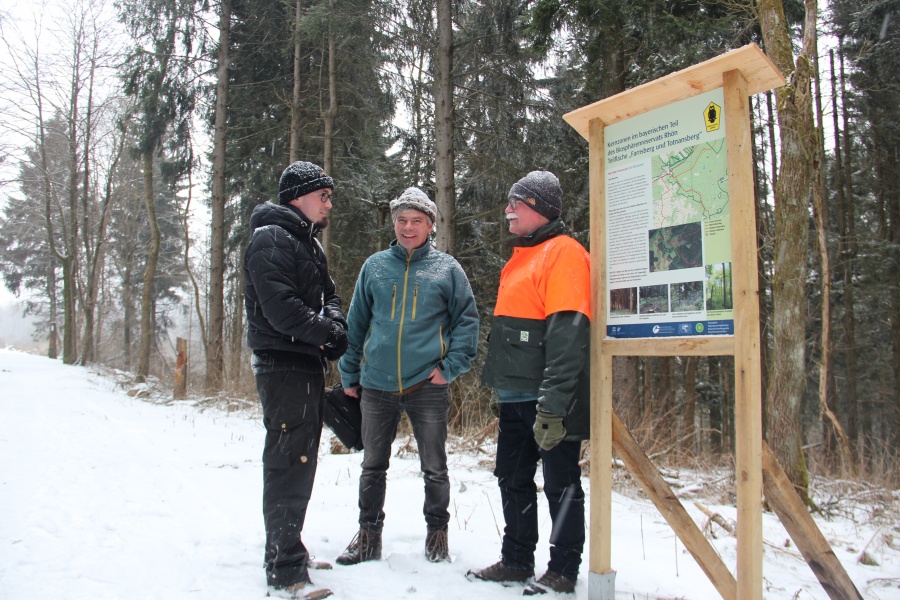 Neue Hinweisschilder informieren über die Maßnahmen in der Kernzone – Fichtenentnahme: Waldumbau im Biosphärenreservat Rhön