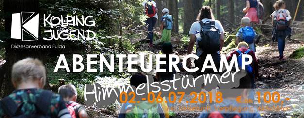 Die Kolpingjugend im Bistum Fulda führt vom 02. – 06. Juli 2018 ein Abenteuercamp in Röderhaid in der Rhön durch. Teilnehmen können...