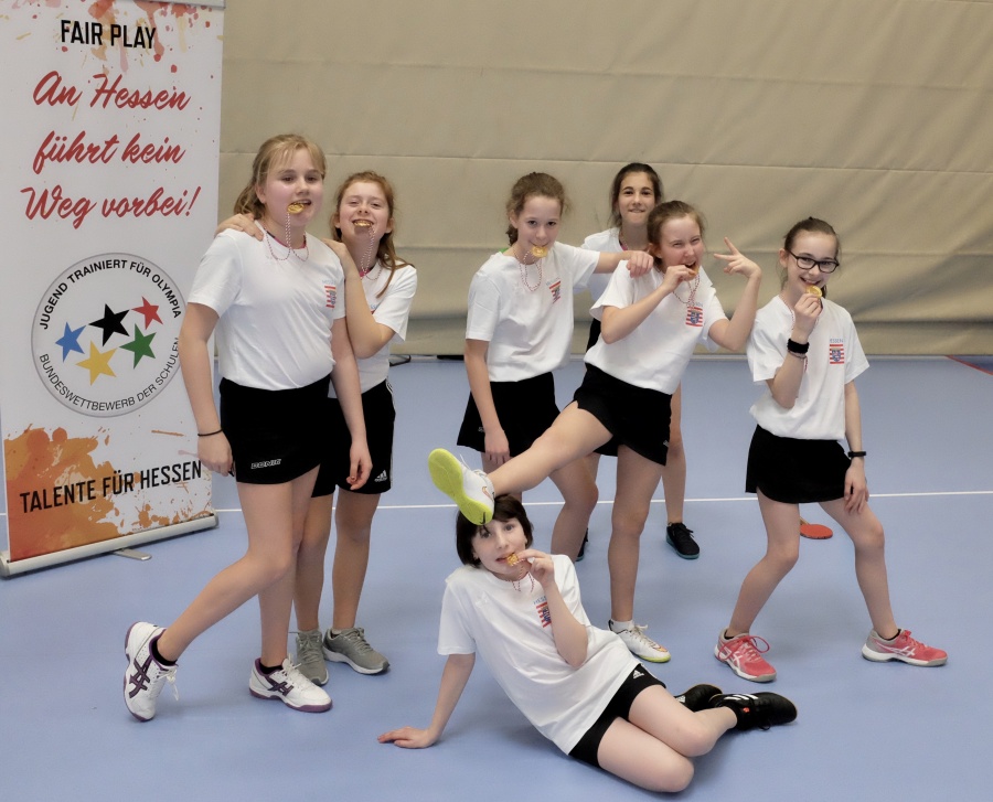 Als frischgebackene Hessenmeisterinnen im Wettbewerb „Jugend trainiert für Olympia“ versammelten sich vor wenigen Tagen Laura...